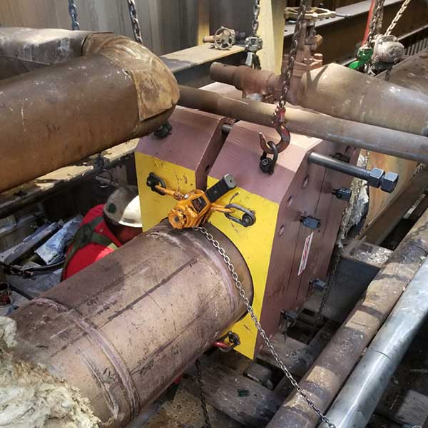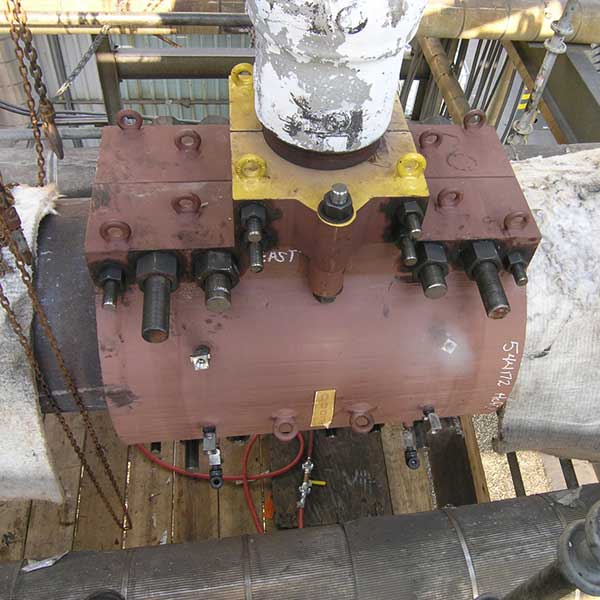 The leak is quickly contained once any of these fitting are bolted properly to the line. There is no need for shutdown during repair. Depending on the line’s size and pressure, clamping ends maybe needed to resist unbalanced forces.